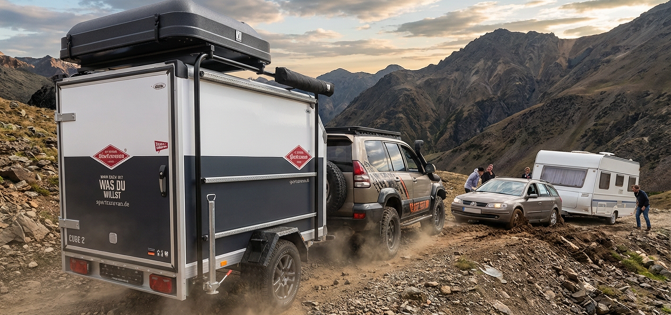 Mit dem neuesten Modell aus der SPORTCARAVAN Serie bekommst du einen Anhänger in bereits optimierte Ausführung: Die ausgetüftelte Technik, und das entscheidende Fachwissen auf was es ankommt, macht den Kleinen zum Liebling aller Freizeitsportler. WC, Küche mit Spüle, Kühl-Gefrierbox und Kochfeld, Heizung, Außendusche u.v.m. können individuell kombiniert oder eingesetzt werden. Mit diesem kleinen Großen Cube 2 Caravan kann man mit Freunden oder der ganzen Familie in den Urlaub fahren und das Leben in vollen Zügen genießen – Hobby-Ausstattung inklusive!